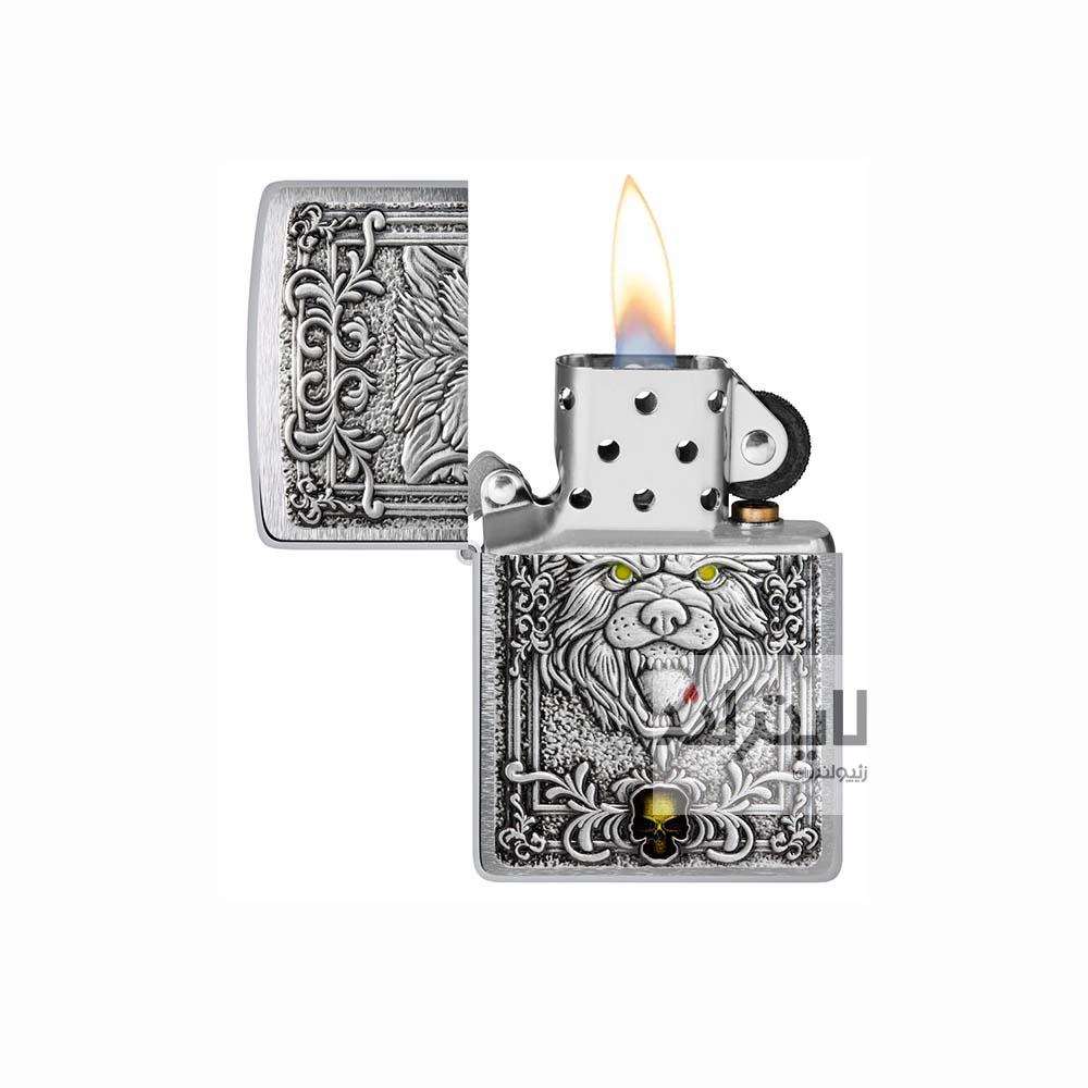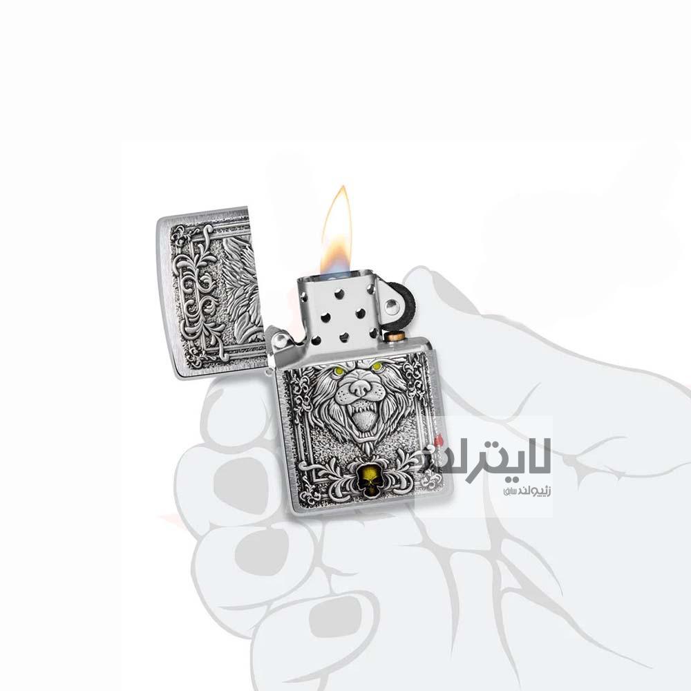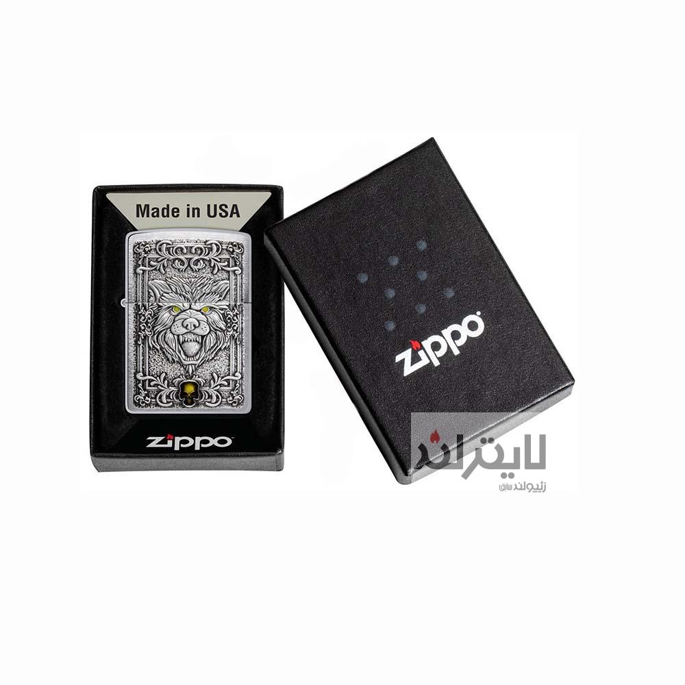 فندک زیپو مدل Brushed Chrome Wolf Emblem Desig کد ۴۸۶۹۰